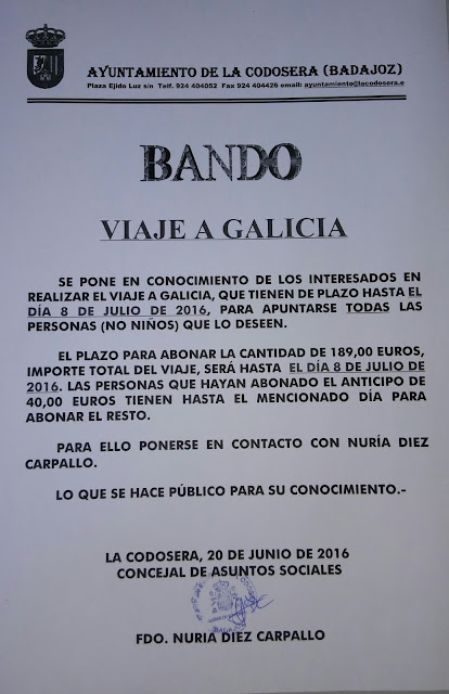 Viaje a Galicia del 21 al 24 de julio.